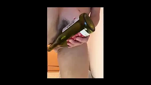 Tante seksi dengan memek berbulu lagi asik muasin memeknya pakai botol sampanye.